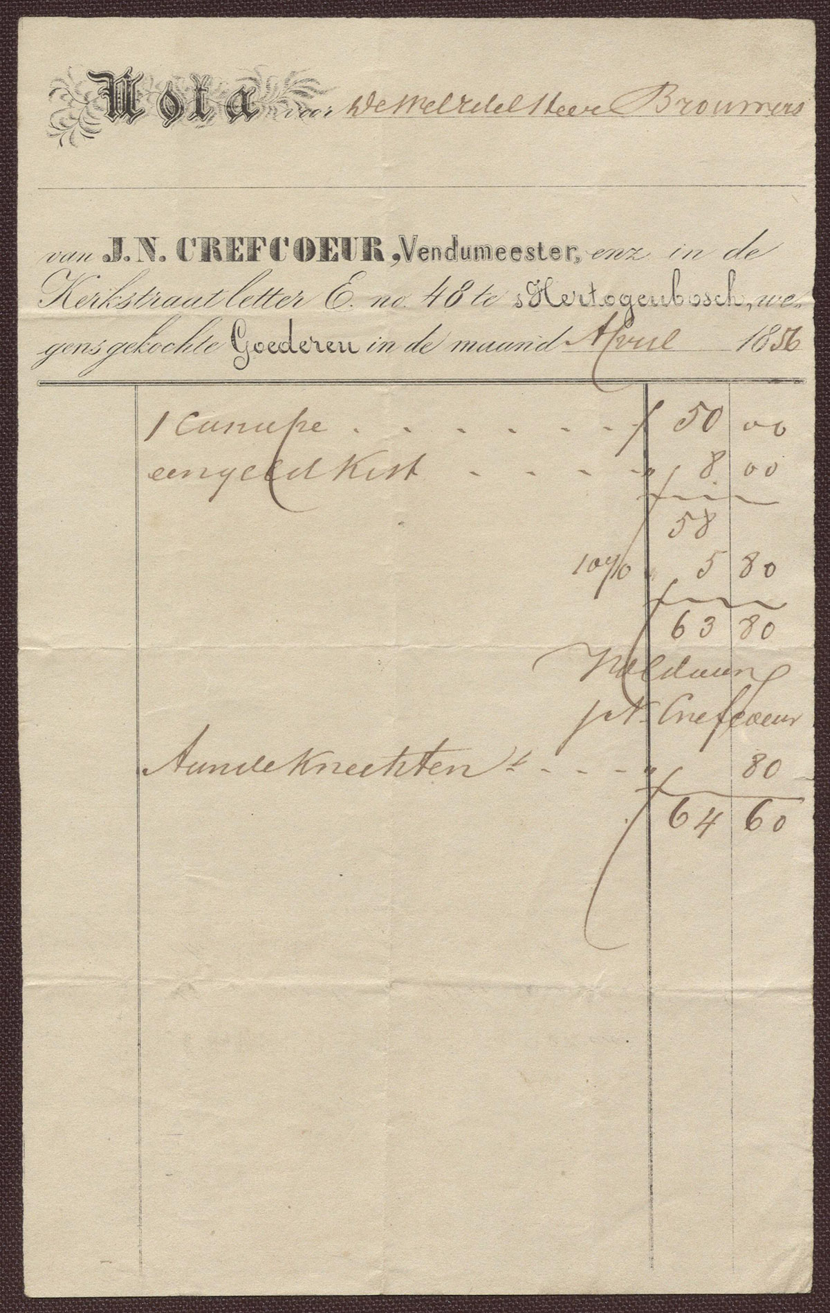 J.N. Crefcoeur, Vendumeester