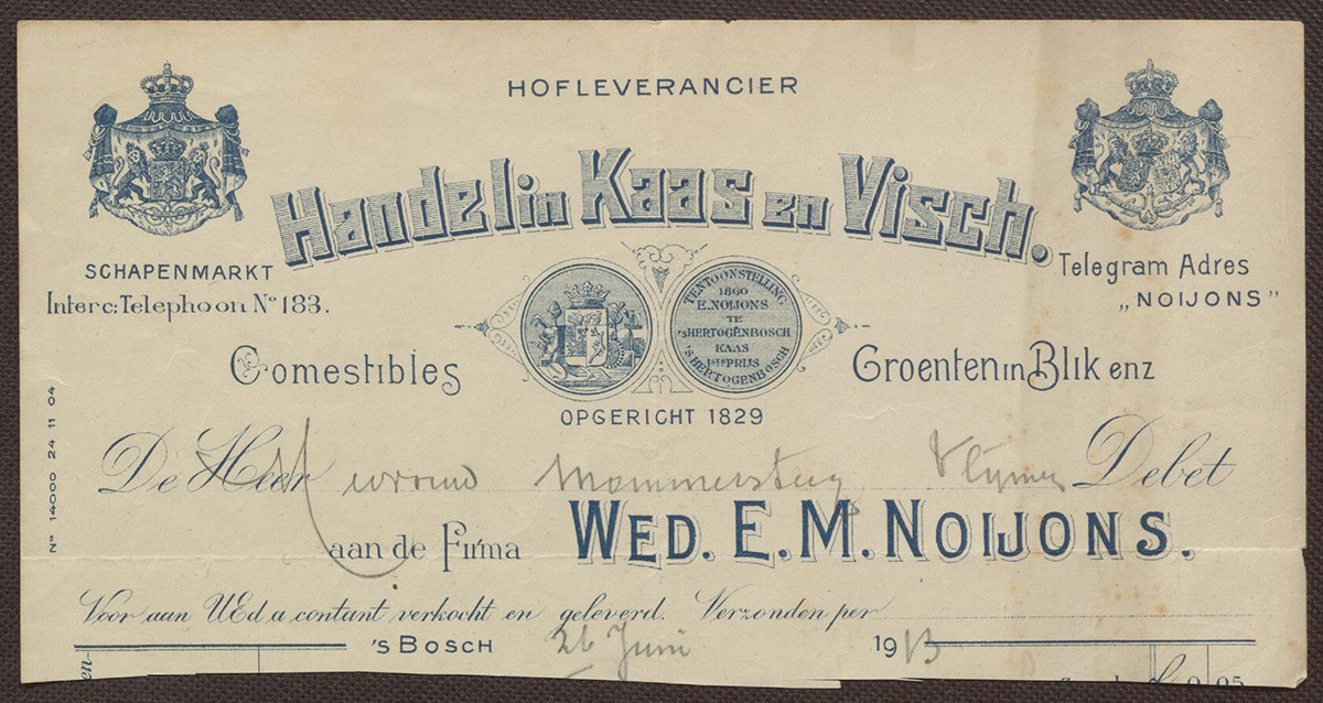 Firma wed. E.M. Noijons : Handel in Kaas en Visch