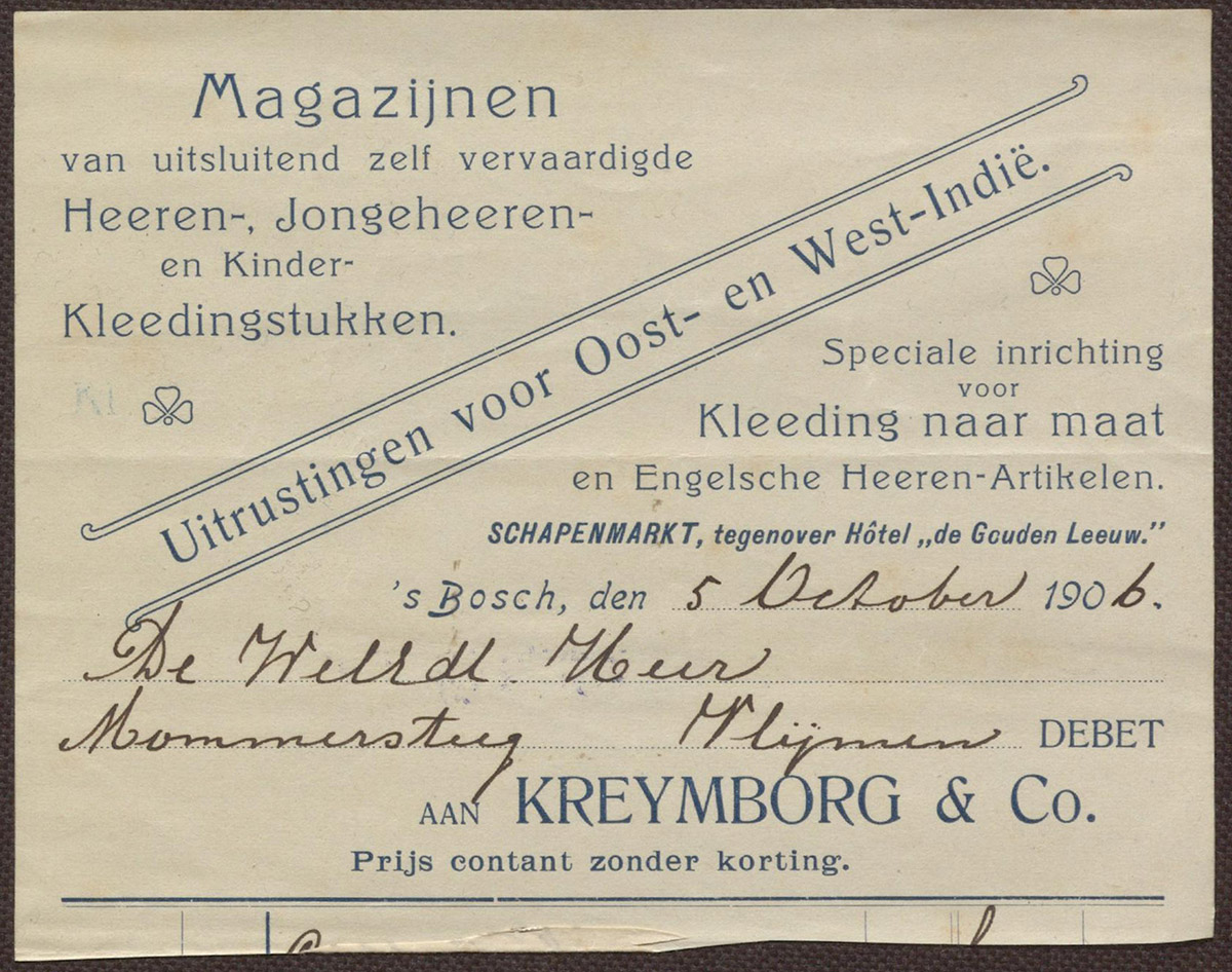 Magazijnen van uitsluitend zelf vervaardigde Heeren- Jongheeren- en Kinder- Kleedingstukken