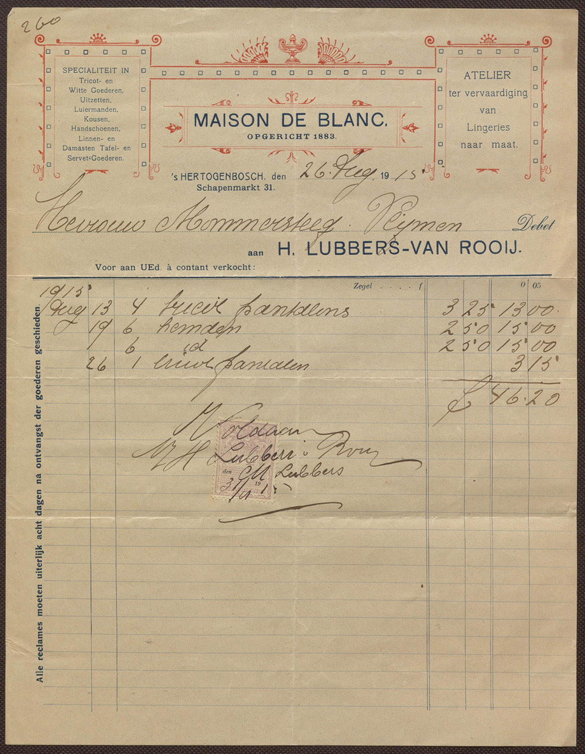 1915, 26 augustus