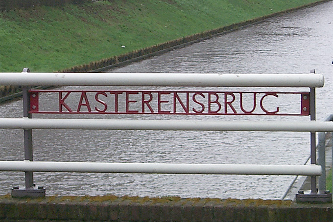 dienst 1928. De pijlers en landhoofden zijn onderheid met betonnen palen. Achter muren van baksteenmetselwerk is beton gestort. Deze muren deden dienst als bekisting. De aanbruggen zijn samengesteld uit acht langsliggers van gewapend beton. De breedte van het rijdek is 6,00m met aan weerszijden voetpaden van 1,80m breed. Het val bestond in 1928 uit twee geconstrueerde hoofdliggers met de nodige langs- en dwarsdragers. Ook de hameistijlen en balanspriemen waren van geconstrueerd vloei-ijzer gemaakt. De breedte van het val tussen de leuningen is 9,00m en de rijdekbreedte is 6,00m. Bij het oorlogsherstel in 1950 werden de hameistijlen vervangen door de thans nog aanwezige gelaste stalen constructie. Voor het val is toen gebruik gemaakt van een brug uit Zuid-Holland. De gemetselde borstweringen op de aanbruggen hebben plaats gemaakt voor een open leuning. Overigens zijn de aanbruggen van gewapend beton behouden gebleven. De brug wordt sinds 1928 elektrisch bediend. Huidige functieDe brug vormt een belangrijke verbinding tussen het stadscentrum en de noordelijke daarvan gelegen buitenwijken. De Kasterensbrug is geschikt voor alle soorten wegverkeer.MonumentwaardeHoewel de hameistijlen dateren van na 1940 en het val door het naoorlogse herstel niet meer origineel is, is de balans vanwege de vakwerkconstructie karakteristiek voor staalconstructies uit de vooroorlogse periode. Deze constructie heeft industrieelarcheologische waarde. Als wegverbinding sinds het begin van de 19de eeuw, bezit het object ook cultuurhistorische waarde. | 47 |