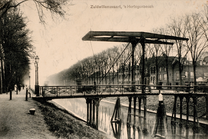De brug ligt over de Zuid-Willemsvaart en verbindt de Van Berckelstraat met het Kardinaal van Rossemplein. Het object is kadastraal bekend als Gemeente 's-Hertogenbosch , sectie H nr. 3712 ged. Eigenaar/beheerder/onderhoudsplichtige is Rijkswaterstaat, Directie Noord-Brabant te 's-Hertogenbosch. Oorspronkelijke functieDe brug diende vanaf 1826 als verbinding tussen de stad en de (latere) bedrijven langs de noordzijde van de Zuid-Willemsvaart.GeschiedenisAanvankelijk van deze brug niet begrepen in het bouwplan voor het graven van de Zuid-Willemsvaart (1822-1826). Tijdens de onderhandelingen tussen het rijk en de gemeente over het tracé en de financiering van de kanaalwerken, bedong de gemeente een oeververbinding in het verlengde van de Nieuwstraat. De brug kreeg de naam Veemarktbrug, genoemd naar de veemarkt die plaats vond op het huidige Kardinaal van Rossumplein. Deze naam bleef ook na verplaatsing van de veemarkt in 1931 nog jaren lang gehandhaaft.Het oorspronkelijke houten hameigebint en de balans van de ophaalbrug zijn waarschijnlijk omstreeks 1850 vervangen door gegoten ijzer. Dit gebeurde tegelijkertijd met de wijziging van andere bruggen over de Zuid-Willemsvaart. Later werden de balansen in geslagen ijzer uitgevoerd, waarmee waarschijnlijk smeedijzer wordt bedoeld. Ook de houten brugliggers werden door ijzeren vervangen. Tussen 1878 en 1892 zijn van een achttal bruggen over de Zuid-Willemsvaart de bovenjukken van de houten onderbouw vervangen door ijzeren jukken. Vermoedelijk behoorde de Veemarktbrug tot die acht. Op den duur bleek ook deze uitvoering niet meer te voldoen aan de eisen van de tijd, zodat in 1928 zowel de onder- als de bovenbouw werden vervangen. De gemeente Nederlandse militairen bliezen in de meidagen van 1940 de brug op, maar de brug werd spoedig hersteld. Van de bovenbouw die tijdens de bevrijding in 1944 weer ernstig werd beschadigd, gebruikte men in 1950 alleen de balans opnieuw. De beschadigde onderbouw is zoveel mogelijk in de vroegere toestand teruggebracht. Technische beschrijvingDe bestaande onderbouw is uitgevoerd volgens Rijkswaterstaatsbestek nr. 172, dienst 1928. De ijzeren bovenbouw is gemaakt volgens Bestek nr. 173, | 46 |