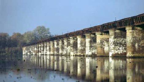 15m en de lengte en breedte van de pijlers, boven de versnijdingen, bedraagt respectievelijk 10,73m en 1,60m. Het bovenvlak ligt op 6,425m + AP (circa 6,23m + NAP). De pijlers zijn gefundeerd op een houten vloer, gedragen door kespen en houten palen. De bovenkant van de vloer ligt in het algemeen op AP (circa 0.20m - NAP). De bovenvlakken van pijlers en landhoofden zijn afgedekt met hardsteen. Er zijn geen bestekgegevens van de landshoofden bekend, maar deze zijn qua constructie en materiaal vergelijkbaar met de pijlers. De bodem tussen de pijlers alsmede de taluds bij de landhoofden zijn bezet met Doornikse steen op een puinlaag. In beide eindpijlers zijn hardstenen peilmerkstenen met ingehakte cijfers opgenomen. De overbrugging is ontworpen voor een dubbel spoor, maar uiteindelijk ingericht voor een enkel spoor. De ijzeren bovenbouw is gemaakt volgens Bestek nr. 836, dienst 1882-1884 van de Staatsspoorwegen. De 36 doorstroomopeningen zijn overspannen met 16,20m lange vakwerkbruggen, die elk zijn gecontrueerd uit 2 hoofdliggers gekoppeld door dwarsdragers met daartussen 2 langsliggers. Alle liggers zijn samengesteld uit geklonken profielen, platen en strippen. De hoofdliggers bestaan uit 12 velden met diagonalen. De 6 middenvelden zijn voorzien van gekruiste diagonalen. Tussen de onderranden van de hoofdliggers is een windverband aangebracht. Het toegepaste materiaal is overwegend getrokken ijzer. Op de bovenranden van de langsliggers zijn eikenhouten dwarsliggers geplaatst. Hierop zijn ten behoeve van de spoorstaven onderlegplaten aangebracht. De onderlegplaten zijn met schroefbouten bevestigd terwijl de spoorstaven met haakbouten op de onderlegplaten zijn gemonteerd. Een eikenhouten vloer ter dikte van 50mm is aangebracht tussen en naast de spoorstaven tot aan de koppen van de dwarsliggers. | 30 |
