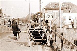 Met veel gezang, muziek en geknal is het nieuwe Bossche station vorige week officieel geopend. En de stad heeft er weer een fontein bij. In november 1868 was de stad voor het eerst met de trein (vanuit de richting Boxtel) bereikbaar. Ruim twintig jaar had men over dit nieuwe vervoersmiddel gediscussieerd en ook over de te volgen route. En Den Bosch zou een centrum voor spoorverbindingen worden. Want niet alleen uit de richting Eindhoven, ook vanuit Utrecht (september 1870), Tilburg (juni 1881) en Nijmegen (juni 1881) stoomden de stoomlocomotieven richting Hertogstad. De Brabantse hoofdstad zou bovendien vanaf oktober 1890 een spoorlijn naar de Lage Zwaluwe krijgen, het halve-zolen-lijntje. Deze laatste lijn is al tientallen jaren buiten gebruik gesteld. De negentiende eeuwse spoorlijnen lagen een eind buiten de stad. Maar Den Bosch breidde zich uit. In eerste instantie tot aan het spoor (de wijken Het Zand, De Muntel en De Vliert), vervolgens werd er ook achter het spoor gebouwd. De spoorwegovergangen bleken hinderlijk, zeker toen het auto- en fietsverkeer meer en meer toenam. Tunnels leken de oplossing. Er kwamen tunnels ('de onderdoorgang') bij de Vlijmenseweg, onder het station en bij de Veemarktkade. In de jaren zeventig kwam men met het idee om niet meer de auto's, fietsers en voetgangers naar beneden te laten rijden, maar om het gehele spoor op te hogen: hoogspoor. Er volgden besprekingen tussen de NS en de gemeente en in 1974 werd de beslissing genomen; in 1975 startte men met de werkzaamheden. Vooral de drukke spoorwegovergang bij de Orthenseweg, bij het café De Kup, was een flink obstakel. Als de bomen gesloten werden stonden al spoedig aan beide zijden lange rijen auto's te wachten tot de trein gepasseerd was. De spoorlijn zou meters opgehoogd en de bocht in de lijn zou eruitgehaald worden. Ondermeer betekende dit dat café de Kup moest verdwijnen (naar de Citadellaan); de vijf erachter gelegen barakken waren enkele jaren tevoren reeds door W&R verlaten, maar de daar weer achter gelegen sportvelden moesten weg. Volkstuinvereniging Pastoor Barten moest verhuizen naar De Herven. Sedertdien kan het vervoer op de openbare weg ongehinderd door de vele passerende treinen vanuit het stadscentrum naar de nieuwe wijken - tot aan de Maas - rijden. Er bevinden zich drie doorgangen onder het hoogspoor: bij de Orthenseweg, de Rompertsebaan en de Bruistensingel. De laatste honderddertig jaar is het spoorverkeer enorm toegenomen. De stoomlocomotieven zijn vervangen door electrische treinen en dubbeldekkers zorgen ervoor dat er méér passagiers in één trein kunnen plaatsnemen. En vanaf aanstaande zondag zal de dienstregeling weer veranderen, als 'het nieuwe spoorboekje' in werking treedt. |