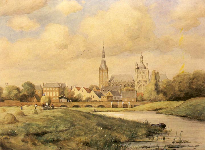 De oude stad gezien vanuit het Bossche Broek, de enige plaats langs de wallen waar geen stadsuitbreiding plaatsvond.