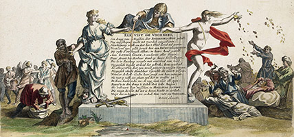 - De afkondiging der verloting uit het Nederduitsch in het Frans overgezet en de teekening der juweelen en prijzen gemaakt om die te doen drukken en prenten.