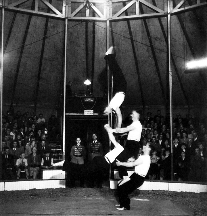 ![body=[]](documenten/vertier (circus)/002.org.jpg) De Witoni's, een Bosch' gezelschap van acrobaten, dat in wisselende samenstelling kort na de oorlog optrad in circus Briantelli. Foto: Stadsarchief.
