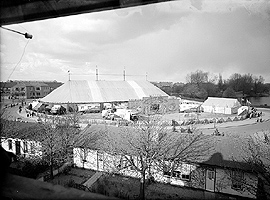 Bruggeman: 'Het was zo, dat de gemeente bij optredens van beroemde circussen allerlei vervoer, zoals trams en boten, regelde, zodat de boeren uit de omgeving een voorstelling konden bijwonen en na afloop naar huis konden terugkeren. Om het circus, dat met twee treinen aankwam, naar de Koningsweg te vervoeren, werden alle beschikbare paarden van de Bossche vrachtrijders ingezet. De olifanten moesten te hulp komen om de circuswagens uit de modder te trekken.'