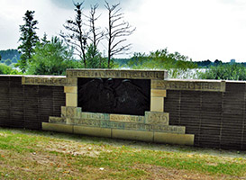 InleidingAan de Hekellaan gelegen gedenkteken, vervaardigd in 1938 door architect Co Brandes en beeldhouwer Albert Termote in een stijl die invloeden vertoont van het Expressionisme. De bronzen plaquette werd uitgevoerd door de 'Witmetaalfabriek' te Leiden. Het gedenkteken is opgenomen in het verhoogd gelegen middendeel van een dubbelarmige trap. Deze trap leidt naar een bordes pal bovenop een voormalig rondeel aan de zuidzijde van de vroegere Bossche stadswal, die met de overige rondelen, bastions en voorliggende gracht van rijkswege is beschermd.De Bossche burgerij nam het initiatief voor het gedenkteken ter ere en nagedachtenis van Henri Bakker (1911-1936), de eerste piloot in de Nederlandse luchtmacht. OmschrijvingHet object is symmetrisch van opzet en bestaat uit diverse blokken Duitse Muschelkalksteen van uiteenlopende grootte die een in het midden geplaatste bronzen plaquette omlijsten. Deze plaquette wordt omzoomd met een geprofileerde lijst met versneden hoeken aan de onderzijde en toont in licht haut-reliëf een vliegende adelaar die met zijn klauwen een medaillon met het portret van Henri Bakker vasthoudt. Signatuur rechtsonder '1938 A. TERMOTE'. De kalksteenblokken vormen aan de voet van het gedenkteken een breed uitwaaierende basis en sluiten de bovenzijde af met een strook die boven het belendende muurwerk uitsteekt. Teksten in reliëf: 'DE BURGERIJ / DEZER STAD AAN HAREN LUCHT- / VAARTPIONIER / 1911 / HENRI BAKKER / 1936 / EERSTE PILOOT VAN HET NEDERL. LEGER'. Op de basis is linksonder ingebeiteld: 'CO BRANDES / ARCH.' en rechtsonder 'ALBERT TERMOTE / SCULPT.'.WaarderingHet gedenkteken is van algemeen belang. Het object heeft cultuurhistorische waarden als bijzondere herinnering aan de begindagen van de Nederlandse luchtmacht en de ontwikkelingen in de luchtvaart tijdens het Interbellum. Daarnaast als bijzondere uitdrukking van een sociale ontwikkeling. Het object heeft kunsthistorische waarde wegens de esthetische kwaliteiten van het ontwerp en de zorgvuldige detaillering. Het object is gaaf bewaard gebleven. Het object is vrij zeldzaam wegens het gebruik van de Duitse Muschelkalksteen en is als gedenkteken zeldzaam binnen het oeuvre van de landelijk bekende architect Brandes. |