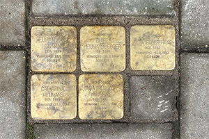Speciale stoeptegels met namen van Joodse inwoners van Den Bosch die tijdens de Tweede Wereldoorlog door de nazi's zijn vermoord. Rond de Van der Does de Willeboissingel komen 61 struikelstenen waarmee de gemeente en de stichting Struikelstenen 's-Hertogenbosch de Joodse stadsgenoten herdenken.