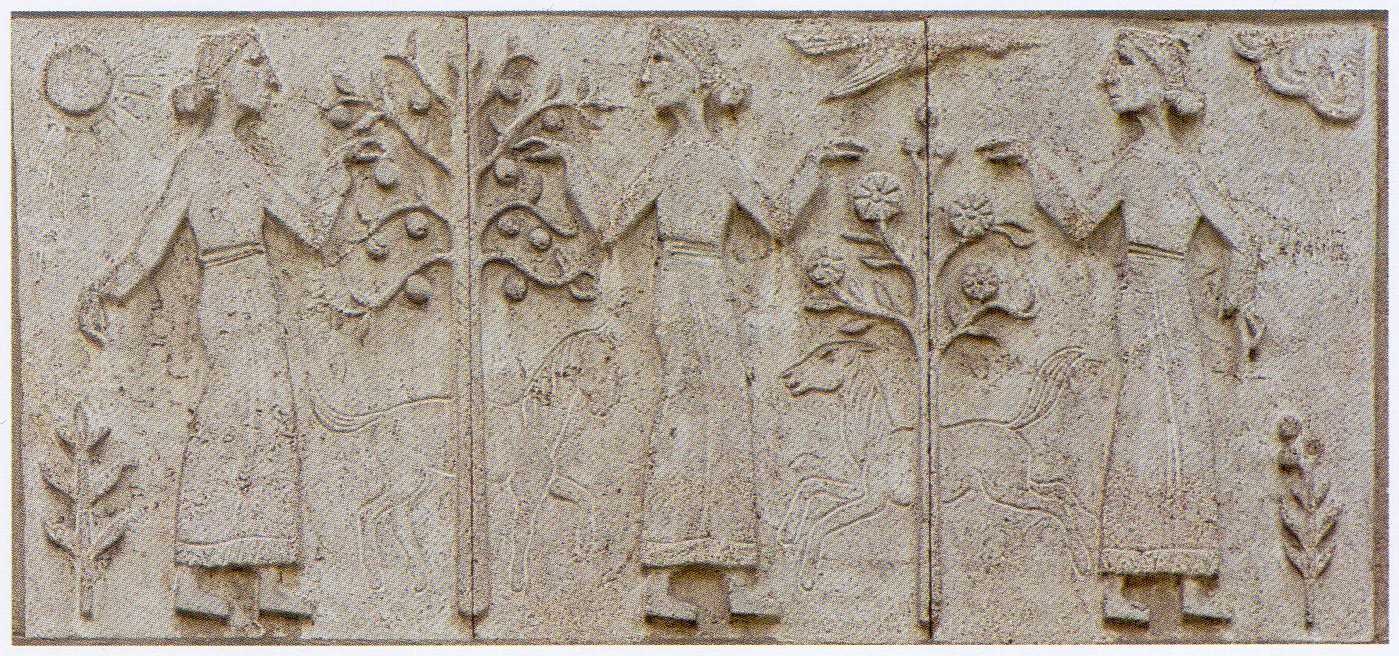 Op nummer 17 van de Gregoriussingel en aangrenzende straten vinden wij een karakteristiek complex woonhuizen aan, daterend uit 1954-1956. Het reliëf aan de Gregoriussingel 17 [21] stelt drie dansende vrouwen in lange kleding voor, in een tuin met bomen en struiken. In de rechter bovenhoek hangt een wolk, in het midden vliegt een vogel voorbij en links straalt de zon. Waarschijnlijk is hier de overgang van winter naar lente en zomer in beeld gebracht. In het centrum van de vlakke achtergrond staan tegenover elkaar een paardje en een hert. | 22 |
