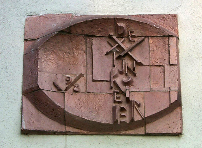 De Bossche kunstenares Jeannie Lelyveld kreeg van J. van Oudheusden de opdracht om dit beroep in een gevelsteen te verwerken. Dat de steen een moderne vorm kreeg, had twee redenen: in het pandje had oorspronkelijk geen gevelsteen gezeten en bovendien was er bij de restauratie zoveel vernieuwd, dat de eigenaar het huis voor het grootse deel als nieuwbouw beschouwt.