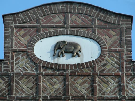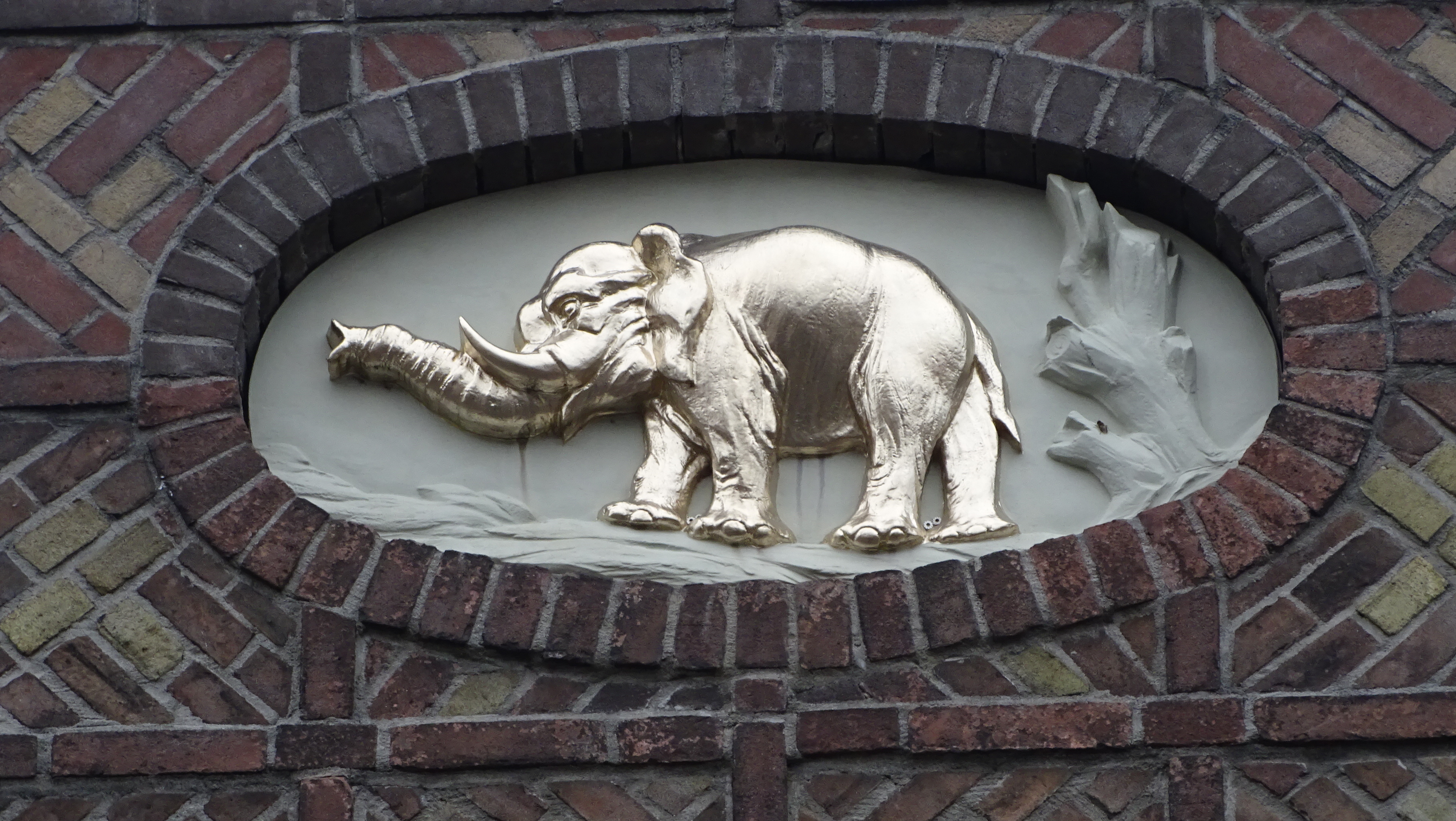 Hinthamerstraat 26, in de voorgevelafmetingen: 115 x 65 cmmateriaal: Franse kaklsteen datering: achttiende eeuw De afgebeelde olifant is niet wit doch verguld. De steen is in slechte staat. In 1741 heette dit pand nog De Molensteen, maar omstreeks 1750 werd het al aangeduid met De witte Olifant. Het was toen eigendom van ene heer De Jong, koekebakker van beroep. Oorspronkelijk zat in de kroonlijst ook een olifant, uit hout gesneden. Een olifant was een van de aanduidingen voor de koekebakker (misschien zag men de olifant als een vertegenwoordiger van de landen waar men de specerijen haalde). | 13 |