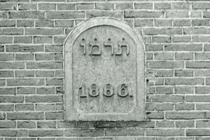 Jaarsteen 1886 in de achtergevel van de synagoge aan de Prins Bernhardstraat afkomstig van de vroegere synagoge aan De Mortel.