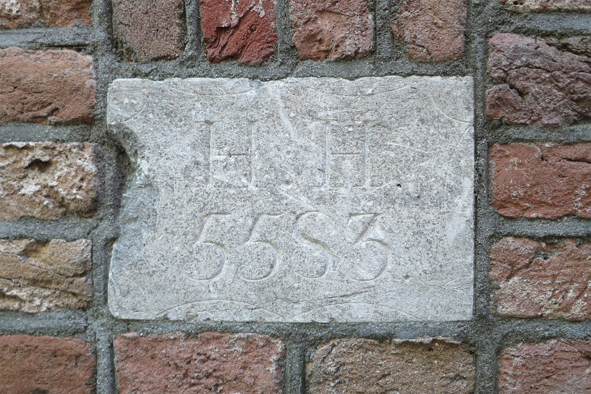 Op steen zijn de initialen van de stichter (Herodes Hartogensis) en het jaar vermeld. 5583 is het jaar, volgens de Joodse jaartelling, waarvan 1823 het equivalent is.