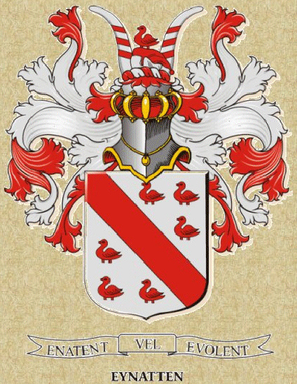 De leden van de Duitse Orde van de familie Van Eynatten (gekenmerkt met hun wapen 'in zilver een rode schuinbalk vergezeld van zes rode merletten zoomsgewijze geplaatst') hebben, blijkens de gevelsteen, boven de merlet in het helmteken als extra toevoeging nog het wapen van de Duitse Orde ('in zilver een kruis van sabel') aangebracht. Dit wapen zou dan met recht het wapen 'Van Eynatten van Gemert' kunnen worden genoemd.