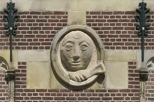 Orthenstraat 3, in de voorgevelafmetingen: doorsnede 93 cmmateriaal: kalksteen datering: vermoedelijk 17e eeuw Een grote ronde steen, voorstellende een bol gezicht. Dit pand was van dezelfde eigenaar als De Gulden Hopsack en maakt nu ook deel uit van het bankcomplex Van Lanschot. | 11 |
