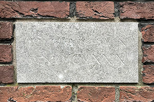 De steen is geplaatst aan de achterzijde van het huis, rechts naast de deur.