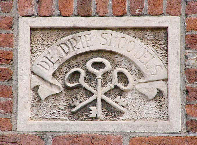 Postelstraat 29-31, in de voorgevelafmetingen: 45 x 35 cmmateriaal: Franse kalksteen datering: 193759 ontworpen door: architect J. Strik Het pand is van 1625 doch de steen is 'nieuw'. Sleutels werden wel gebruiktals uithangteken voor een smidse. | 44 |