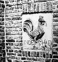 Gevelsteen van het huis "In de Haen". Oorspronkelijk op de Markt. Eerste huis van Cornelis van Lanschot, stichter van de bankiersfirma, samen met het daarnaast liggende huis "De Gulden Ketel". Steen thans ingemetseld aan de achterzijde van het pand Hooge Steenweg 27, behorend aan de firma van Lanschot.