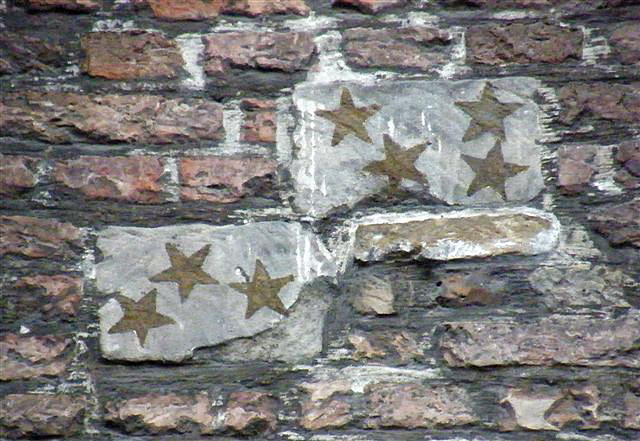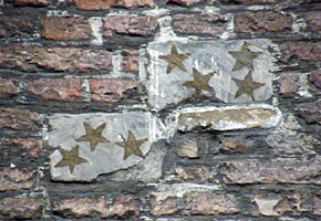 Verwersstraat 81a, in de voorgevelafmetingen: 20 x 10 cmmateriaal: Franse kalksteen datering: vermoedelijk voor 1566 Afgebeeld zijn zeven sterren, met bladgoud overtrokken. In 1566 was ene Laureyns int Sevengestarst de eigenaar van het pand. Hij blijkt een 'beeldenstormer' te zijn geweest, die in 1568 ter dood werd veroordeeld, Waarschijnlijk heeft de steen zich rond die tijd reeds in de gevel bevonden, zij het dan wel in de achtergevel, want hij is pas bij de restauratie van dit zeventiende-eeuwse pand in de jaren zestig van deze eeuw, verplaatst naar de voorgevel. | 6 |