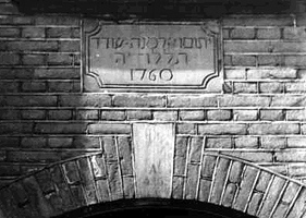 Gevelsteen van het voormalig Joods weeshuis. Vertaling: Huis van Joodse wezen, 1760.