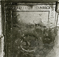 Detail van grafzerk op de binnenplaats van het huis. Hierop is o.a. te lezen 'sterft de 29 october 1624'..'Hanricx'