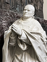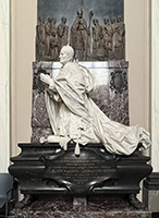 Het pronkstuk, vervaardigd door de Italiaanse beeldhouwer Enrico Quattrini, past goed in de barokke kerk. Het beeld van de kardinaal steekt in wit cararisch marmer af tegen een donker marmeren plaat met links zijn kardinaalswapen en rechts het wapen van de redemptoristen. Daarboven een donkere bronzen plaquette waarop de kardinaal is afgebeeld tussen vertegenwoordigers van de volken; deze is naar boven steeds lichter gepatineerd, tot uiteindelijk een kruis in gouden stralen triomfeert.