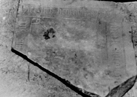 Fragment, gevonden tijdens werkzaamheden t.b.v. de riolering 31 maart 1978, als drempel boven de riolering.