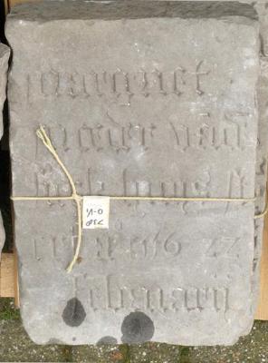 Bij de afbraak van de kerk in 1911 kwamen eenige grafzerken te voorschijn, die lagen onder de houten vloer, welke er in zal zijn gelegd, toen zij tot ziekenzaal werd bestemd. De volgende opschriften staan op de zerken: