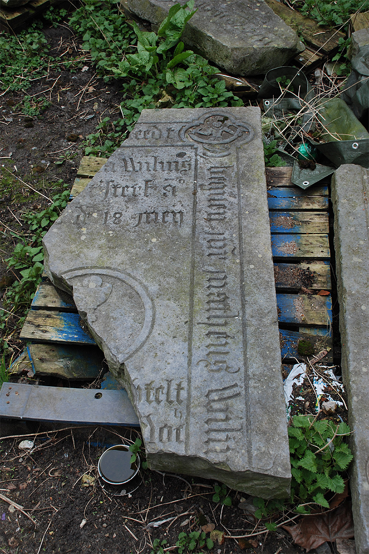 Steen, breedte 115 cm, diepte 222 cmGrafzerk Matheus Willemssz., pastoor van de kerk van het Groot Ziekengasthuis ( 20 maart 1572), zijn zuster Anna Wilms ( 18 mei 1576) en zijn nicht Henrick Berntsdochter, meesteres van de nonnen en jubilaris ( 7 december 1618). |