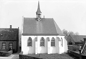 Nederlands Hervormde KerkDe Kerkhof 3, EngelenNederlands Hervormde Kerk. Van dit kerkgebouw resteert nog het koor van de in 1587 verwoeste Lambertuskerk van het dorp Engelen. Aan de westzijde van het kerkgebouw zijn boven maaiveld restanten van het vroegere kerkgebouw gereconstrueerd, waarvan de funderingen zijn aangetroffen bij archeologisch onderzoek. Hieruit is gebleken dat het kerkje een voorganger heeft gekend. Van het 15e eeuwse kerkgebouw zijn het zuidelijke dwarsschip, schip en toren teruggevonden en ter plaatse weergegeven. Het huidige kerkgebouw dateert mogelijk uit 1551 maar is na de verwoesting van 1587 herbouwd in 1615. De kerk heeft met de houten raamroeden en witte muren een 19e eeuws karakter. Binnen de kerk is de dubbele koperen achtlichts kroon (1794, gegoten door Borghart van den Bosch) en een grafzerk van 'Pater Thomas de Berhey' bezienswaardig, alsmede een wijwaterbak uit omstreeks 1500. Die is teruggevonden tijdens rioleringswerkzaamheden.