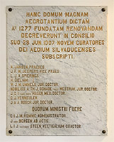 Een lange voorgevel, kenmerkend voor de bouwperiode van omstreeks 1900, verscholen achter een parkeergarage. Vandaag nemen we een kijkje achter de voorgevel van het zusterklooster aan het Burgemeester Loeffplein. Met de komst van dr. Van Moorsel naar het Groot Ziekengasthuis, kwamen er grootste plannen met betrekking tot de nieuwbouw van dit sterk verouderde gasthuis. Van Moorsel wist het College van Regenten hiervan te overtuigen en in 1906 nam dit bestuur het besluit tot een nieuwbouw voor het ziekenhuis. Het ziekenhuis was reeds meer dan vier eeuwen bereikbaar via de Gasthuisstraat en een bruggetje over de Binnendieze. Het grootste deel van het aanwezige complex werd in 1908 gesloopt. Op de plaats waar men zich de nieuwbouw van het nieuwe ziekenhuis had gedacht, moest eerst het kerkhof worden geruimd. Tot op een diepte van vijf en een halve meter moest er gegraven worden om honderden geraamten te kunnen verwijderenn die deels 'regelmatig in rijen opgestapeld' waren. Men kwam er zelfs een houten kist tegen, waarin zich het geraamte van een paard bevond. In 1910 werd de grote hoofdvleugel gerealiseerd met de neo-gotische kapel en daarachter een stervormig vleugelcomplex. Het geheel bevatte acht grote zalen en enige kleinere ruimten, waarin totaal 160 bedden stonden opgesteld. In het nieuwe complex was geen plaats meer voor een kerkhof, evenmin voor eigen groenten- en fruittuinen. In 1915 was de nieuwbouw geheel gereed. Maar al snel bleek de beschikbare ruimte veel te klein: in 1928 werden panden aangekocht in de Nieuwstraat. In deze straat werd tot 1932 een nieuwe hoofdingang gebouwd en daarachter veel andere ziekenhuisruimten. De ruimten voor de ziekenverzorging verschoven in de richting van de Nieuwstraat. Het voormalige hoofdgebouw werd langzamerhand in gebruik genomen als klooster, aangezien het aan de Binnendieze gelegen 'Zusterhuis' te klein geworden was. De Duitse zustersIn Trier in Duitsland bevond zich een klooster van de Congregatie der Barmhartige Zusters van het H. Carolus Borromeus. Tijdens de Kulturkampf (een geschil tussen Bismarck en de r.k. kerk) keken de zusters uit naar een mogelijke vesting elders. De Bossche bisschop Zwijsen voelde wel iets voor een vestiging in 's-Hertogenbosch en in mei 1876 kwamen de eerste 'Duitse zuster' hier aan. In een herenhuis aan 'de Plein' (Jan Heinsstraat) begonnen zij een ziekenhuisje. In hun kloosterkroniek lezen we: 'In een geheel vreemde omgeving, met geheel vreemde omstandigheden, was haar taak bijzonder moeilijk om het huis zo in te richten, dat het geschikt was en aangepast aan de behoeften, zowel van de zieken als van de andere inwoners.'Ook het gebrek aan kennis van de Nederlandse taal maakte het de Zusters moeilijk om zich een nieuw bestaan op te bouwen. Ze kwamen van alles te kort in het huis. Zelfs het allernoodzakelijkste, stoelen en banken, waren er weinig. Voorlopig zat men op kisten. Ook bedden waren er niet voldoende. Goede mensen brachten stro om er zakken mee te vullen. De strozakken bleven nog zolang in de schuur liggen om ze 's avonds naar hun bestemming te brengen. Groot was echter de schrik en teleurstelling van de Zusters, toen bleek dat de strozakken verdwenen, gestolen waren. Het Carolus-ziekenhuis, waar de 'Duitse zusters' eerst verpleging ter hand hadden genomen, groeide sterk. Ook de regenten van De Godshuizen zagen de ijver en inzet van de Duitse zusters en vanaf 1880 namen de zusters ook de ziekenverzorging in het Groot Ziekengasthuis ter hand. Vele oudere Bosschenaren zullen zich de gebrekkig Duits-Nederlands sprekende zusters nog best voor de geest kunnen halen. Na eest in het 'Zusterhuis' aan de Binnendieze onderdak gevonden te hebben, kreeg hun convent later onderdak in het uit 1910 daterende oude hoofdgebouw. Thans is daar nog steeds een klooster gevestigd met een aantal religieuzen. Ten aanzien van de toekomstplannen van het Groot Ziekengasthuis (nu Bosch Medicentrum) wordt vanzelfsprekend ook gesproken over het hierboven behandelde pand. Ondermeer de stadbibliotheek zou er zich best in willen vestigen. |