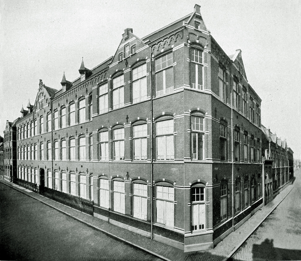 6c. Onderwijs in de Orthenstraat te ´s-Hertogenbosch, parochie St. PieterIn 1841 waren de Zusters al actief in de parochie van St. Pieter. Op verzoek van pastoor Van den Heuvel. Dat was in een naai- en breischool voor arme meisjes. Er waren aan zulke scholen geen wettelijke eisen gesteld en akten voor onderwijzeressen waren niet vereist. Dit schooltje werd aanvankelijk geleid door een viertal dames uit de gegoede burgerij, waaronder een zus van de pastoor die de akte van ´schoolhouderes´ bezat. In 1841 werd de Congregatie om assistentie gevraagd. Zuster Coleta van Tetterode kwam toen en die beviel blijkbaar zo goed dat ze er 24 jaar bleef. Met de komst van Zuster Theresia Bolsius in 1842 werd een begin gemaakt met het onderwijs in lezen, schrijven en rekenen op een lagere school. Na verloop van tijd trokken de burgerdames zich terug en ging het bestuur over in handen van de Congregatie. Het was de eerste parochieschool, voor lager onderwijs voor arme katholieke meisjes in de stad, in de leeftijd van 7 tot 16 jaar. In 1844 volgde daar een bewaarschool voor armen en drie jaar later ook een voor kinderen van rijkere ouders. In 1847 werd, op initiatief van pastoor Van den Heuvel, begonnen met een borduurschool voor arme meisjes, zodat ze zich een middel van bestaan leerden verschaffen. Die school werd in 1854 opgeheven toen op die plaats een burgerbewaarschool kwam. Er waren destijds dus standenscholen: Armenscholen, Tussenscholen (voor kinderen van arbeiders en van de kleine burgerij) en Burgerscholen (ook Franse scholen genoemd) voor welgestelden die een relatief hoog schoolgeld moesten betalen.In 1887 kocht de nieuwe pastoor, Th. Spierings, een huis in de Orthenstraat nr.1, De (Gulden) Brouwkuip, direct noordelijk van het straatje ´Ruische Poort´. Daar werd een aantal klassen gebouwd op de achtererven, vanaf de Ruische Poort tot het Eerste Straatje van Best. (De twee huizen die in vroeger tijden op dit brede perceel stonden heetten van oudsher De Gulden Brouwkuip (rechts, nr. 1) en De Gulden Struis (links, nr. 3). Het is veertien jaar in het bezit geweest van het kerkbestuur van de St. Pieter. In 1901 kopen de Zusters van de Choorstraat het gehele huis. In het huis De Gulden Struis komt het klooster. Nu zitten ze vlakbij het scholencomplex dat in 1887 was gebouwd op het grote erf achter De Gulden Brouwkuip dat zich uitstrekt tot aan de Dieze. De Zusters betrekken daadwerkelijk in 1901 het nieuwe klooster, met een kapel, naast de bestaande bewaarscholen, de lagere meisjesschool, de Mariaschool, een Montessorischool voor burgermeisjes (met Zr. Inviolata als hoofd). In 1895 was er al een Franse klas bijgekomen. Er kwam ook een Muloschool en een meisjesinternaat. Het klooster wordt genoemd naar ´De Zoete Moeder´. Het huis in de Orthenstraat nr. 7, De Lintmolen, tussen het ´Eerste Straatje van Best´ en het ´Tweede Straatje van Best´ werd in 1905 door de Zusters gekocht van fabrikant De Gruyter die naar de overzijde van de Orthenstraat verhuisde. De Zusters wisten ook de erachter gelegen fabrieksruimte te verwerven. Op dit perceel, van straat tot Diezestroom, laten de Zusters een nieuwe lagere school bouwen. Architect Julien Dony krijgt de opdracht. Hij ontwerpt een gebouw met het voorste deel in renaissancestijl. De mooie voorgevel is nog te zien. Een deel wordt armenschool en heeft de ingang in het Tweede Straatje van Best, het andere een burgerschool, toegankelijk via het Eerste Straatje van Best. (Het gebouw blijft zijn onderwijsbestemming behouden, ook nadat de zusters vertrokken zijn in 1962. In de jaren zestig zit er de Hogere Agrarische School en een korte tijd de LTS. In 1974 koopt Van Lanschot dit pand). Het kloosterhuis in de Orthenstraat op nr. 1 werd in 1922 geheel afgebroken en vervangen door een nieuw huis, in oudhollandse renaissancestijl op verzoek van de schoonheidscommissie. Vanuit het architectenbureau W. Th. van Aalst ontwierp J. van Halteren in 1922 dit vier verdiepingen tellende monumentale gebouw met een trapgevel, gotische ornamenten en eigentijdse sierreliëfs. Het ziet er nog steeds fraai uit, maar de Zusters moesten destijds de gehele dag de lampen laten branden vanwege de kleine | 7 |