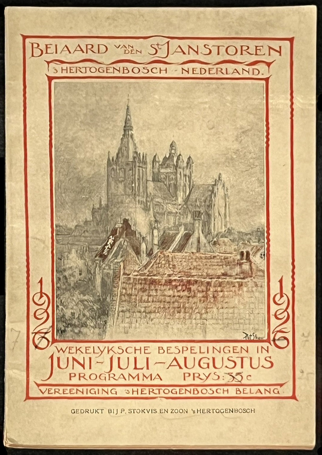 inventarisnummer: DIV ???Programmaboekjes van de beiaardconcerten op de Parade uit 1926, 1927 en 1928. Uit binnen- en buitenland kwamen beiaardiers naar 's-Hertogenbosch om de beiaard van de St. Jan te bespelen. Sinds 1925 heeft de St. Jan nieuwe klokken, die in het Verenigd Koninkrijk zijn gegoten.De Parade stond vol met luisteraars naar de concerten. Piet Slager ontwierp de programmaboekjes. |