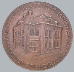 Geslagen ter gelegenheid van zijn 25-jarig jubileum aan de Nederlandsche Bank te 's-Hertogenbosch. Voorzijde: voorstelling van het gebouw van de Nederlandsche Bank Randschrift: "DE NEDERLANDSCHE BANK - AGENTSCHAP 'S HERTOGENBOSCH" Keerzijde: opschrift: DEZE PENNING / WERD DEN HEER / H.J.M. EBELING / AANGEBODEN DOOR DE BEAMBTEN / VAN HET AGENTSCHAP. Randschrift: 25 JARIG AMBTSJUBILE * 1895 - JULI 1920 *.