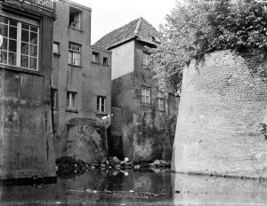 Restanten van oude waterpoort XIIIA, bestaande uit twee halve ronde hoektorens waarvan de noordelijke later is opgemetseld en momenteel nog zichtbaar is. De zuidelijke toren bevindt zich bijna geheel onder het huidige maaiveld. Gebouw van eenvoudige doch harmonische architectuur en van oudheidkundige waarde. |