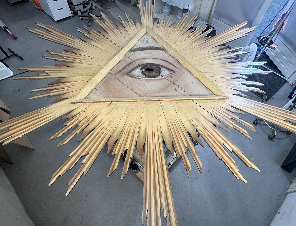 Wederom een mooie en eervolle opdracht afgerond, het restaureren/ontstoren van het 'Alziend oog' van de Sint Janskathedraal van 's-Hertogenbosch. Met de inbraak in de Sint Jan afgelopen april is helaas ook het 'Alziend oog' beschadigd. Met een goed team, Maikel Niël (bouwhistoricus), Ronald Glaudemans (bouwhistoricus, Gemeente 's-Hertogenbosch) en Arjen Witjes (projectleider, Nico de Bont | TBI de Bont) hebben we een Plan van Aanpak voor het herstellen gemaakt. Ik ben dankbaar dat ik het vertrouwen heb gekregen om mijn steentje te mogen bijdragen. Het is mooi om restauratie opdrachten uit te voeren voor onze stad zodat hiermee de geschiedenis en de verhalen verteld kunnen blijven worden! |