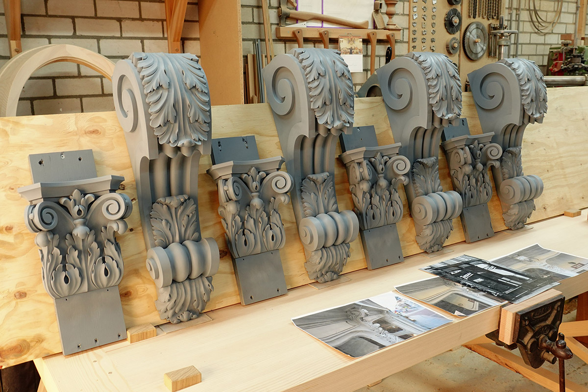 Houtsnijwerk tbv reconstructie monumentale winkelpui