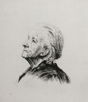 Portretstudie van oude vrouw "Model KTA". Kop en schouders; profiel naar links.