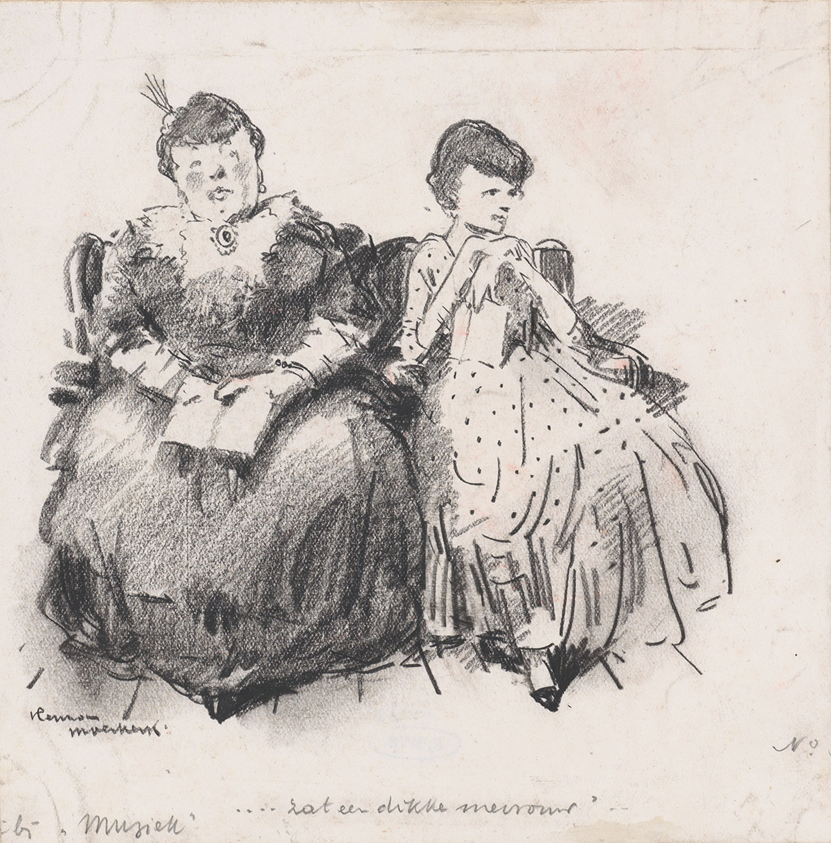techniek: krijt op papier, 16.3 x 16.3 cm