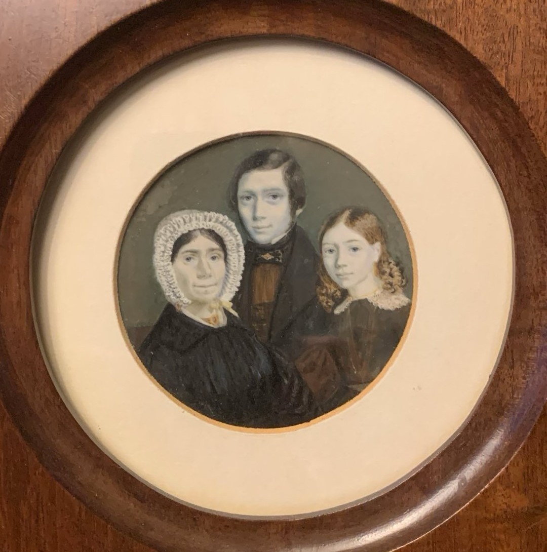 Miniatuur voorstellende drie halffiguren: links, met chique kornetmuts, moeder Maria Nederveen, geboren Leeuw (Amsterdam 1783 - 's-Hertogenbosch 1870); midden: schilder Daan Nederveen; rechts zus Geertrui (´Trui´) Nederveen, de latere mevr. Sonderegger-Nederveen ('s-Hertogenbosch 1824 - aldaar 1893).