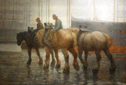 Het werk ‘Werkpaarden aan de dokken’ was lange tijd als verloren geacht, maar is recentelijk door Museum Slager aangekocht. Op zaterdag 10 december, om 16.00 uur, zal het werk officieel door gedeputeerde dhr. B. Pauli worden onthuld.