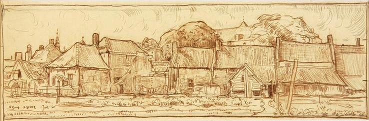 Huizen en voormalige Sint Jacobskerk gezien vanaf de Hekellaan