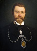 Doek 70-58 cm; Sign. rechtsonderOpvolger van Van Koenen als President van de Confrèrie St. Eloi, geschilderd bij zijn 25-jarig jubileum. Aan de keten: Conf. St. Eloi en de patroonheilige in goud in een medaillon. | 14 |