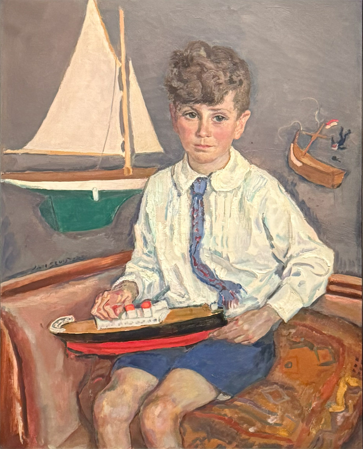 Sluijters omringde de kinderen die hij portretteerde vaak met hun persoonlijke spullen. In het portret van deze jongen vallen de drie schepen op. Bernard had vermoedelijk een interesse in het speelgoed. De schepen verwijzen echter ook naar de redersfamilie waarin hij opgroeide.