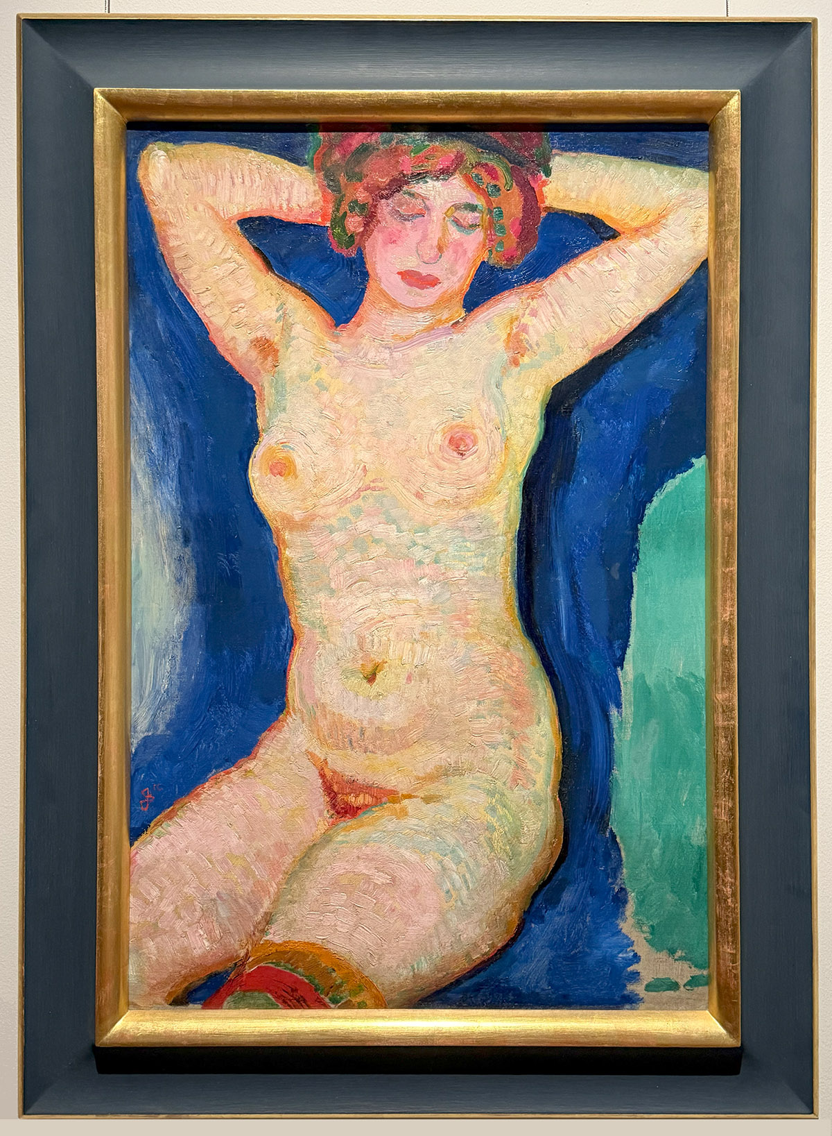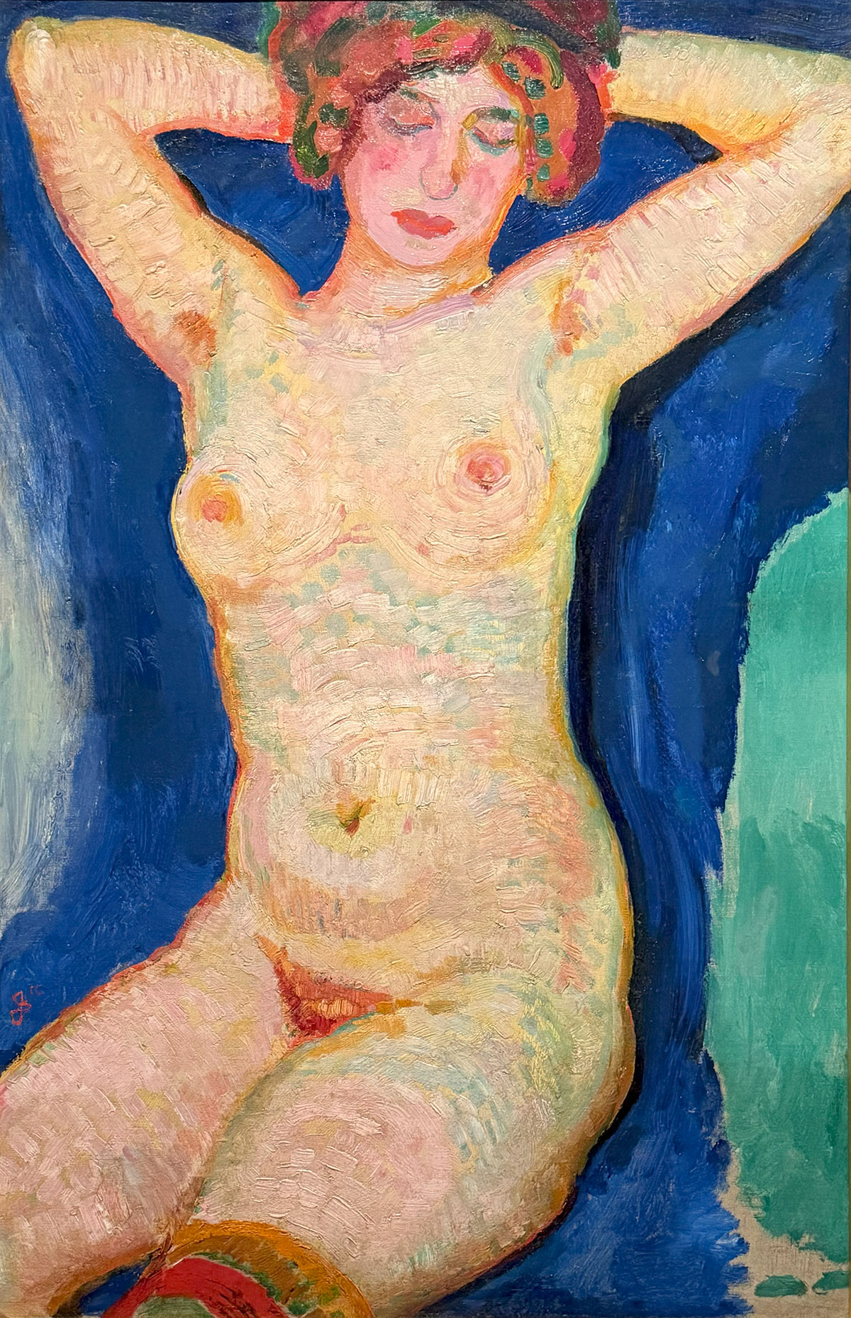 In deze periode schilderde Sluijters naakten die het gehele doek in beslag nemen. Greet van Cooten, de geliefde van Sluijters, poseerde voor dit schilderij. Voor de houding, de contrasterende schaduwband op de achtergrond an de kleurstelling was een werk van Kees van Dongen de directe inspiratiebron.