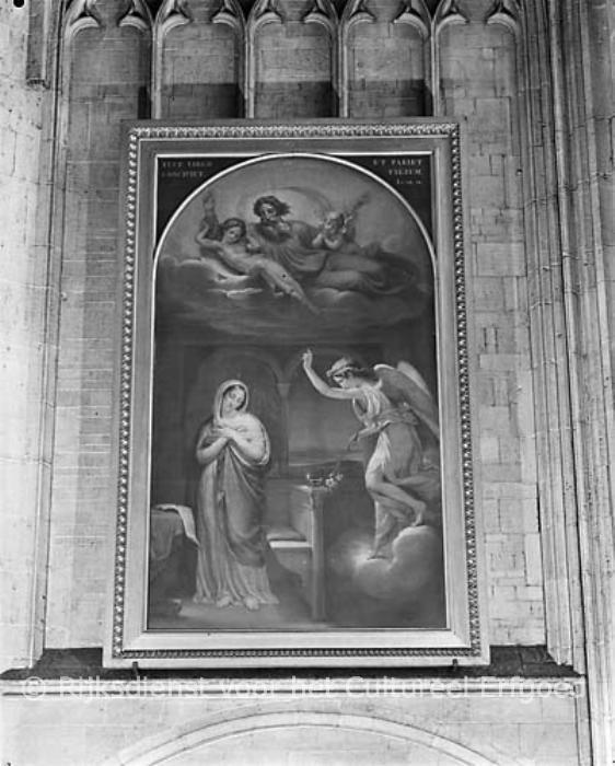 1837. Iemand, die onbekend wenscht te blijven, geeft 1375 gulden om daarvoor aan te koopen het kapitale schilderij „Maria Boodschap”, door den Antwerpenaar Johannes Antonius Verschaeren, toen hij in Rome was, gepenseeld. Het zou geplaatst worden in het hierboven, (1822) vermelde altaar. Het hangt thans boven het monument-Masius. | 529 |