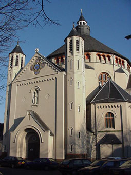 Het bezoek van architect Jan Stuyt (1868) aan de Aja Sofia in Istanbul vormde het hoogtepunt van zijn reis naar het Midden Oosten in 1905. Van dit bezoek zei Stuyt: wanneer men dât gezien heeft en de Christelijke kerk heeft ervaren, dan is men voor heel zijn leven tot de KOEPELKERK bekeerd! Voor het kerkbestuur en pastoor F.M. Sweens (1864) moet het duidelijk geweest zijn dat, toen zij in de loop van 1915 architect Stuyt uitnodigden een verbouwingsplan voor de St. Cathrien op te zetten, zij een kerk met koepel zouden krijgen. Stuyt had niet veel voorbereidingstijd nodig. Hij voltooide juist het werk aan de Cenakelkerk van de Heiliglandstichting te Nijmegen. Bovendien waren de maten van het bestaand kerkgebouw zodanig, dat Stuyt in korte tijd een plan kon opzetten voor een kerk met koepel op een regelmatig-achthoekig grondplan. Op 29 december 1915 werd reeds aanbesteed. Bouwbedrijf Aengenendt ontvangt begin januari 1916 de opdracht voor de verbouwingswerkzaamheden. Op 5 januari 1916 werd de onderhandse overeenkomst gesloten tussen kerkbestuur en de 'Industriële Maatschappij' van F.J. Stulemeijer & Co te Breda. Voor een bedrag van ƒ 12.611, zullende benodigde gewapendbetonwerken voor de koepel e.d. worden uitgevoerd. De aannemer begon 17 januari 1916 met de sloopwerken aan de oude klooster-kerk van de Kruisbroeders. Pastoor Sweens kon OP 3 mei 1916 de eerste steen leggen. De aannemer ontving dan zijn tweede termijn (ƒ 8.808,-) In juli 1916 15 de bouw zover gevorderd, dat Stulemeijer met de werkzaamheden voor de betonnen koepel kon beginnen. Hieraan werd tot maart 1917 gewerkt. Na het ontkisten begon de bekende kerkschilder Jan Oosterman volgens een iconografisch plan het koepelgewelf te beschilderen. Voortvarend ging hij te werk. Op 22 juli 1917 honoreerde het kerkbestuur hem met ƒ 1.000,-. Op 30 augustus volgde ƒ 800,- en op 16 oktober 1917, als het schilderwerk aan de koepel voltooid is, werd nog eens ƒ 1.200,- aan honorarium en ƒ 250,- aan bijwerk overgemaakt. Het honorarium bedroeg in totaal ƒ 3.500,-, De koepelbeschildering door Jan OostermanDe koepel rust op een achthoekige onderbouw, De overgang van achtkant naar koepel wordt gevormd door pendentiefs. Deze achthoekige indeling was aanleiding om op de koepel als hoogste deel van de kerk de hemel af te beelden en deze in acht groepen te verdelen. Hierdoor ontstond de idee om op de koepel de figuren van de ACHT ZALIGHEDEN af te beelden. De Christus figuur neemt een bijzondere plaats in (boven het altaar, dus in het Oosten). Het lag voor de hand om daaromheen te groeperen: 'de zuiveren van harte, want ze zullen God zien. In knielende houding, in extase opziend naar Christus, vormen deze figuren een imponerende groep.De barmhartigen zijn geplaatst aan de westzijde en zo schijnt de Christusfiguur met uitgestrekte armen deze barmhartigen te ontvangen. Zij zijn degenen, die Christus in het oordeel zal toespreken: Komt gezegenden mijns Vaders, want Ik had honger en gij hebt mij gespijsd enz.'. Engelen openen de hemelpoort en nodigen de barmhartigen tot intrede uit. Naast 'de zuiveren van harte' vinden wij in volgorde aan de zuidkant: eerst 'de vreedzamen'. Zij naderen in processie de tronende Christus. Begeleid door de vredesengel, dragen zij de olijftak het symbool van de vrede. Hiernaast vertonen zich 'zij die vervolging lijden'. De attributen: kroon en palmtak der overwinning worden hun door de engelen toegereikt. Engelen begeleiden ook de 'armen van geest' en onderrichten hen in de kennis van God. Aan de noordkant van de koepel vinden wij de drie overige ZALIGHEDEN. Hoe treffend worden zij, die 'hongeren en dorsten' door engelen gelaafd en gespijsd! Hoe ontvangen 'zij, die wenen' de beloofde troost en wijzen de engelen hen op de tronende Christus. De 'zachtmoedigen' eindelijk worden terecht voorgesteld als overwinnaars, die de aarde zullen bezitten. Daarom siert de lauwerkrans hun hoofd en dragen zij in de hand de palm der overwinning. De verdeling in achten wordt ook nog aangegeven door palmbomen, die de groepen van elkaar scheiden. De figuren hebben als achtergrond een gekanteelde muur, waarin zich poorten bevinden, die zo geplaatst zijn, dat zij als rustpunt dienst doen. De gehele voorstelling was door Jan Oosterman (1876, Amsterdam) als muurschildering in de trant van de Beuronerkunstschool opgevat. Bij de aanzet van het koepelgewelf zijn van de negen koren van engelen de Seraphijnen, als hoogste in de hiërarchie, in de zestien pendentiefs van de koepel geschilderd. De Seraphijnen, brandend van liefde, hebben boven hun hoofd een vurige tong. Acht engelenkoren worden voorgesteld door grote houten beelden opgesteld in de acht hoeken. Zij werden vervaardigd door de Bossche beeldhouwer Jos J.A. Kuijpers (1862). Over deze beelden is het volgende op te merken: