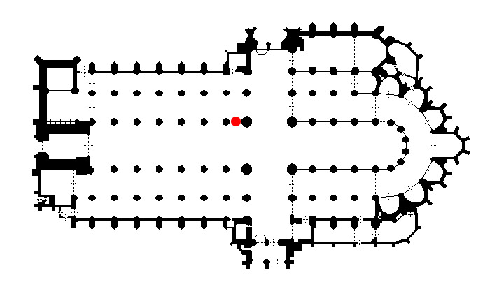 Eerste van zeven altaren der derde kolommenrij, boven beginnende. Het altaar van Eligius patroon van het smedengild had een officie van één Mis en een beneficie van twee Missen. Verlangde iemand opgenomen te worden in het St. Eloïs-gild, waartoe ook de goud- en zilversmeden behoorden, en was hij geen zoon van een gildebroeder, dan offerde hij bij zijne aanneming aan dit altaar vier pond was en twee oude Vlaamschen. (Coppens II. 66). | 198 |